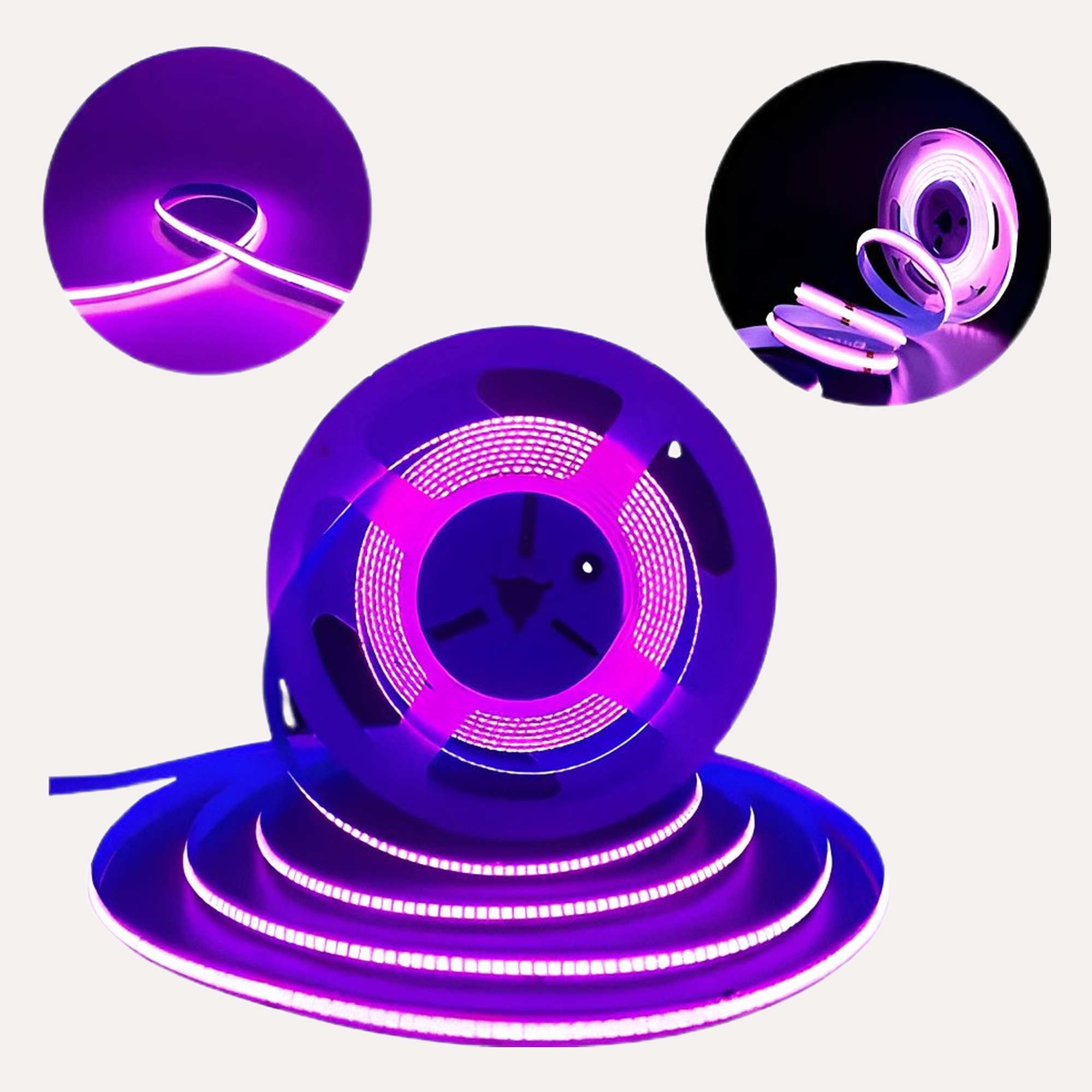 A Fita de LED COB 12V Roxo é uma solução moderna e eficiente para projetos de iluminação decorativa e efeitos luminosos especiais. Utilizando tecnologia COB (Chip On Board), oferece uma iluminação contínua, uniforme e sem pontos aparentes, proporcionando um acabamento visual mais elegante e profissional.