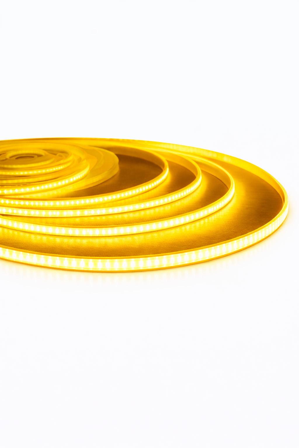 A Fita de LED COB Amarela 360 LEDs por metro oferece uma iluminação contínua, uniforme e vibrante, perfeita para realçar ambientes com uma luz decorativa e aconchegante. Com tecnologia COB (Chip On Board), a fita proporciona um efeito visual sem pontilhamento, garantindo um acabamento sofisticado e moderno. Ideal para uso interno, essa fita funciona com 12V DC e conta com adesivo 3M no verso para fácil instalação em diversos tipos de superfícies. A cor amarela intensa é perfeita para criar efeitos acolhedores em ambientes residenciais, comerciais e decorativos.