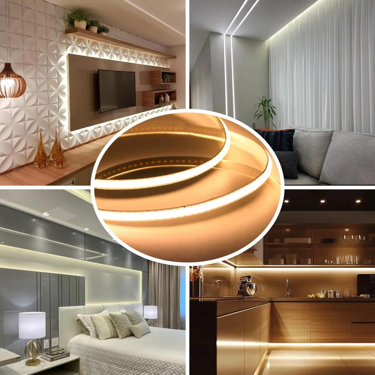 Utilizando tecnologia COB (Chip On Board), essa fita proporciona uma iluminação contínua e uniforme, eliminando pontos visíveis de LED e garantindo um acabamento luminoso sofisticado.
