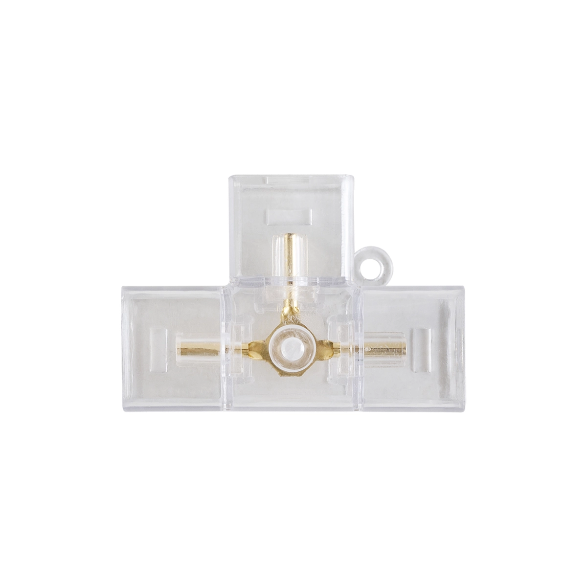 Conector em formato “T” para interligar até três luminárias T5 Honey. Garante montagem prática e segura, ideal para formar ramificações em projetos de iluminação linear.
