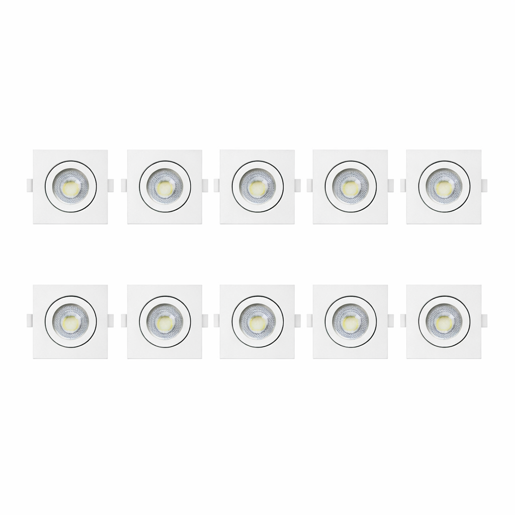 KIT 10 SPOT DIRECIONÁVEL EMBUTIR QUADRADO 7W