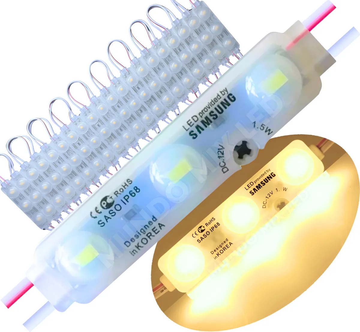 O Módulo de LED com Lente 3 LEDs Branco Quente é perfeito para projetos que exigem iluminação elegante, uniforme e de alto desempenho.
