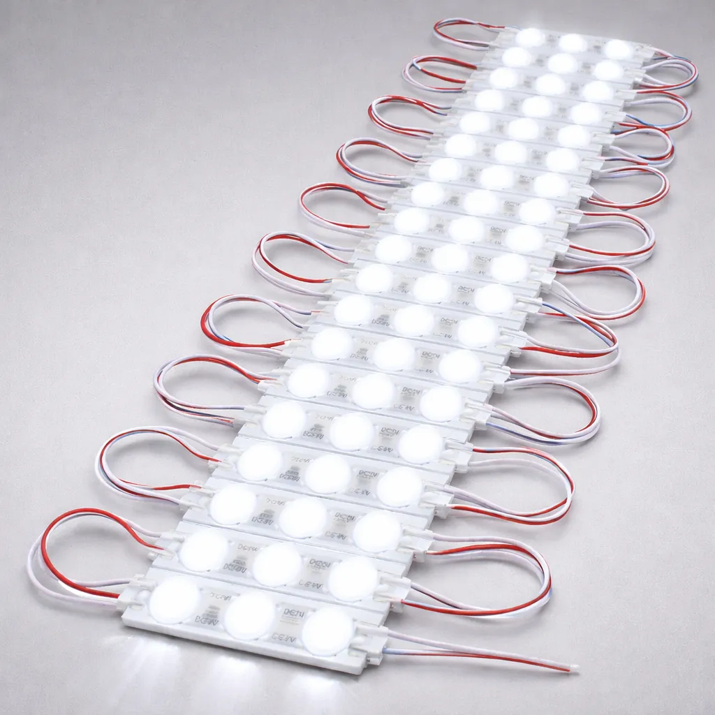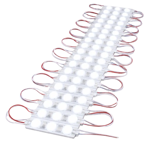 O Módulo de LED com Lente 3 LEDs Branco Frio é a solução ideal para quem busca iluminação uniforme, potente e profissional em projetos de comunicação visual.