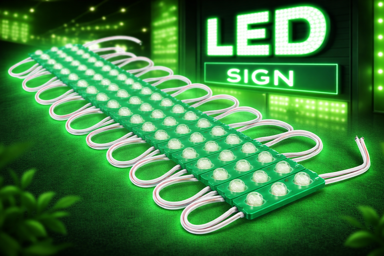 Módulo LED com lente de alta eficiência, ideal para iluminação de letras caixa, fachadas, painéis e comunicação visual. Proporciona iluminação uniforme, com excelente dispersão de luz e baixo consumo de energia.