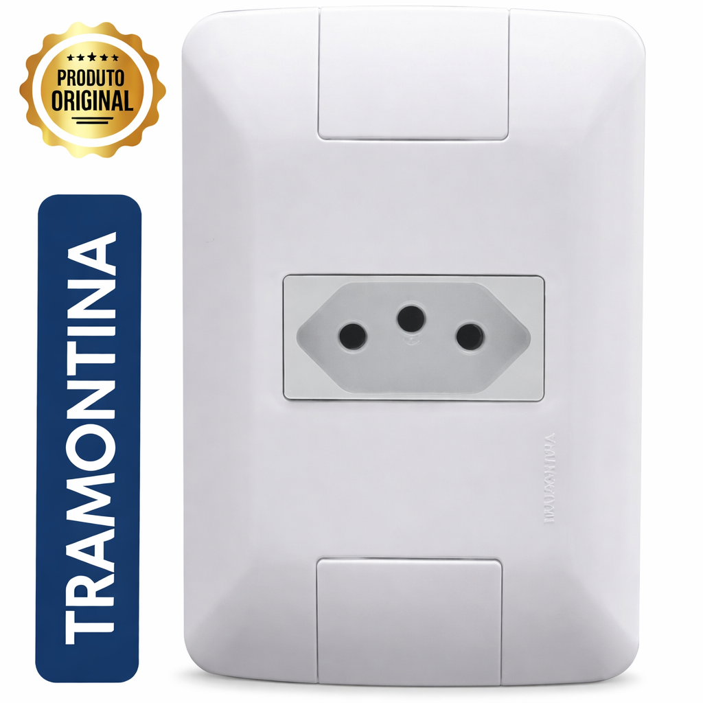 Kit com 10 tomadas padrão brasileiro 2P+T (10A) da linha Aria Tramontina. Produto ideal para instalações residenciais e comerciais, com acabamento moderno, alta durabilidade e segurança elétrica.