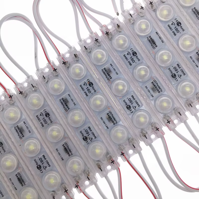 KIT COM 200 MÓDULOS COM LENTE COREANO 3 LED BRANCO QUENTE IP68