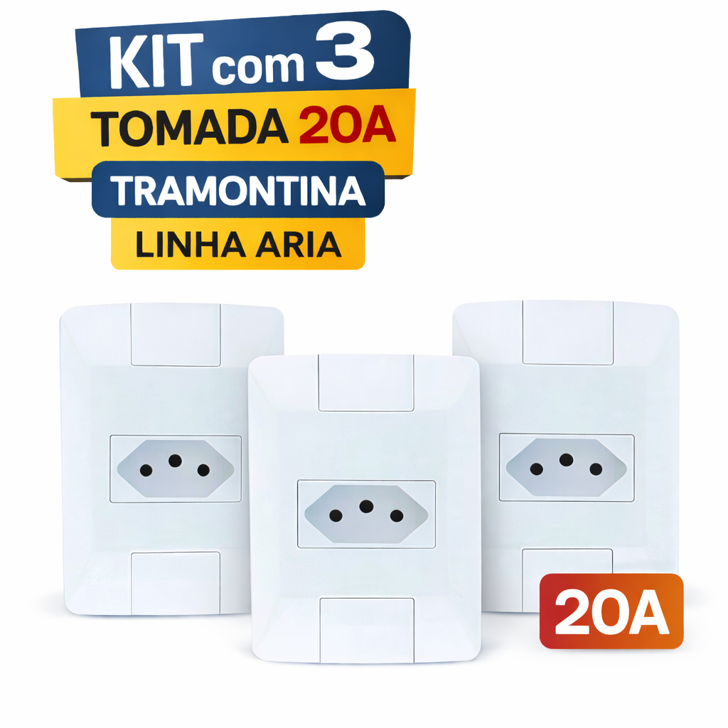 ✔ 3 Tomadas 20A Tramontina Linha Aria