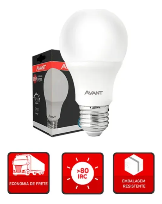 Seu formato bulbo com base E27 (rosca padrão) garante fácil instalação, sendo compatível com a maioria das luminárias residenciais e comerciais. A lâmpada Avant 12W também proporciona iluminação uniforme e ampla, garantindo maior conforto visual e melhor distribuição da luz no ambiente.
