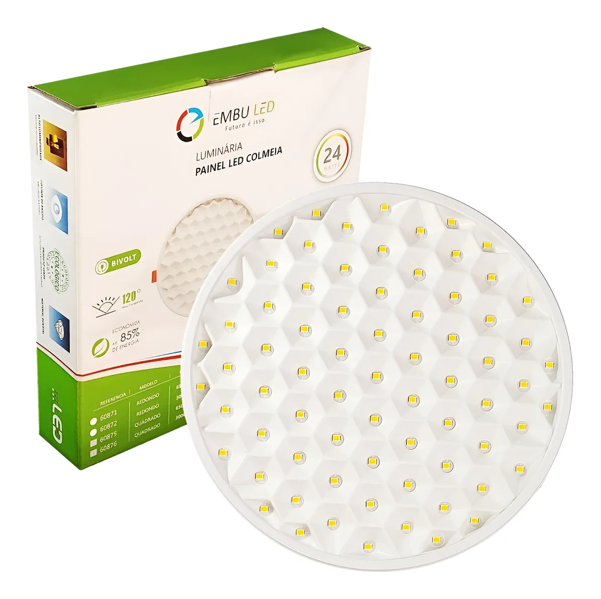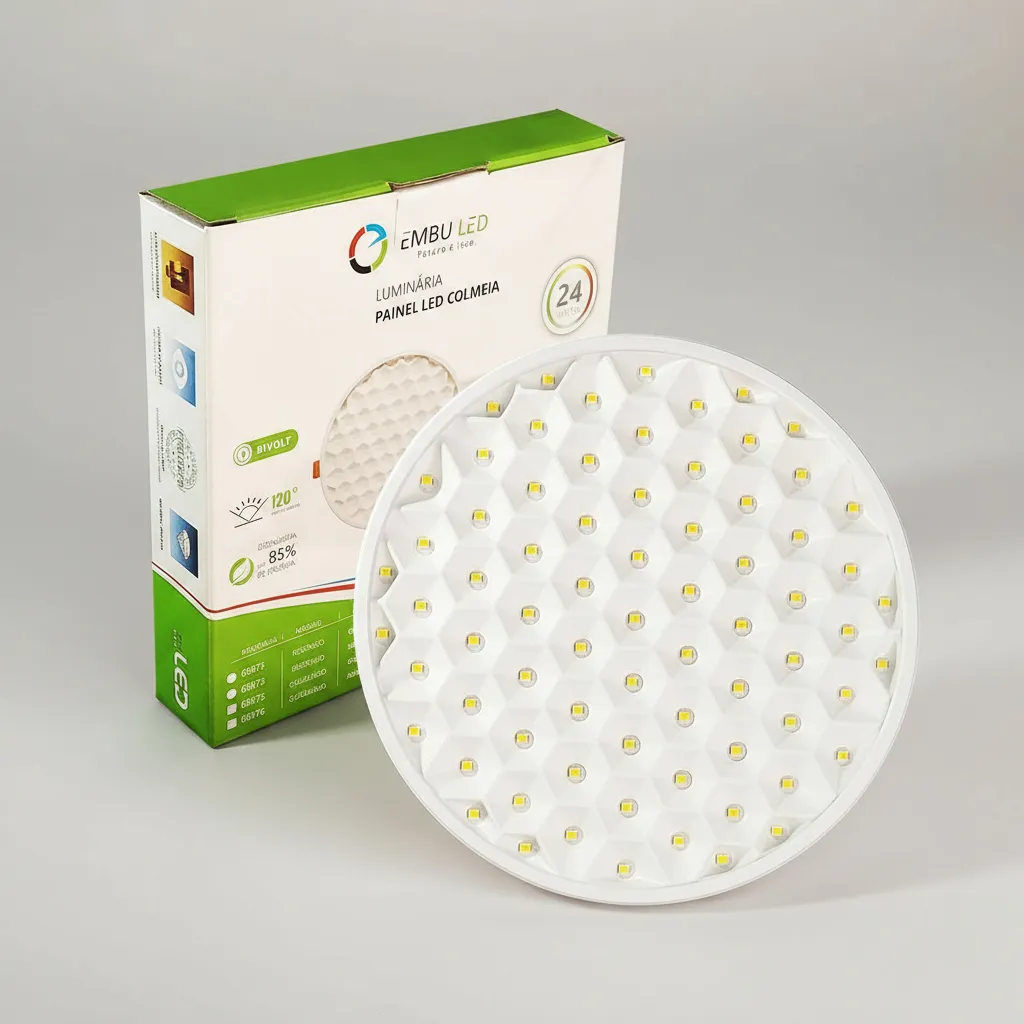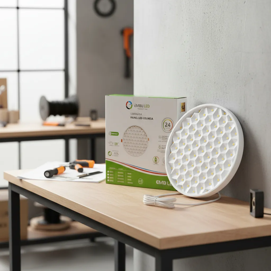 A luminária painel LED colmeia redondo 18W da EMBULED é uma solução moderna e eficiente para iluminação de ambientes internos. Seu design diferenciado com efeito colmeia proporciona uma iluminação uniforme e sofisticada, ideal para projetos residenciais e comerciais que exigem alto desempenho com estética.
