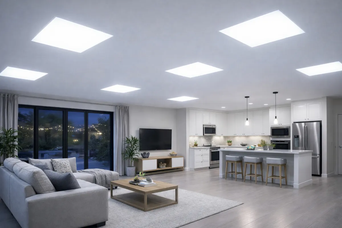 Fabricado com tecnologia LED de alta eficiência, o plafon oferece baixo consumo de energia e longa vida útil, substituindo luminárias fluorescentes tradicionais com muito mais economia. Seu design slim e acabamento em branco garantem um visual moderno e discreto, integrando-se perfeitamente ao ambiente.