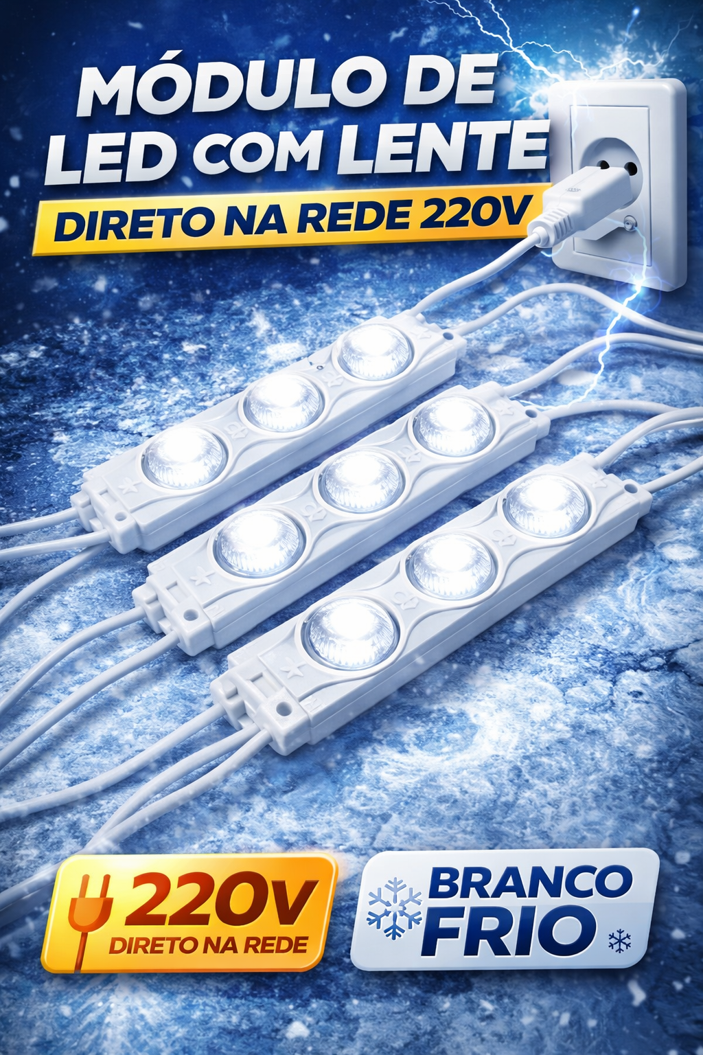 O módulo LED com lente de 3 LEDs é a solução ideal para projetos de iluminação em letras caixa, fachadas comerciais e comunicação visual. Desenvolvido para ligação direta em 220V, dispensa o uso de fonte, garantindo praticidade, economia e instalação simplificada.