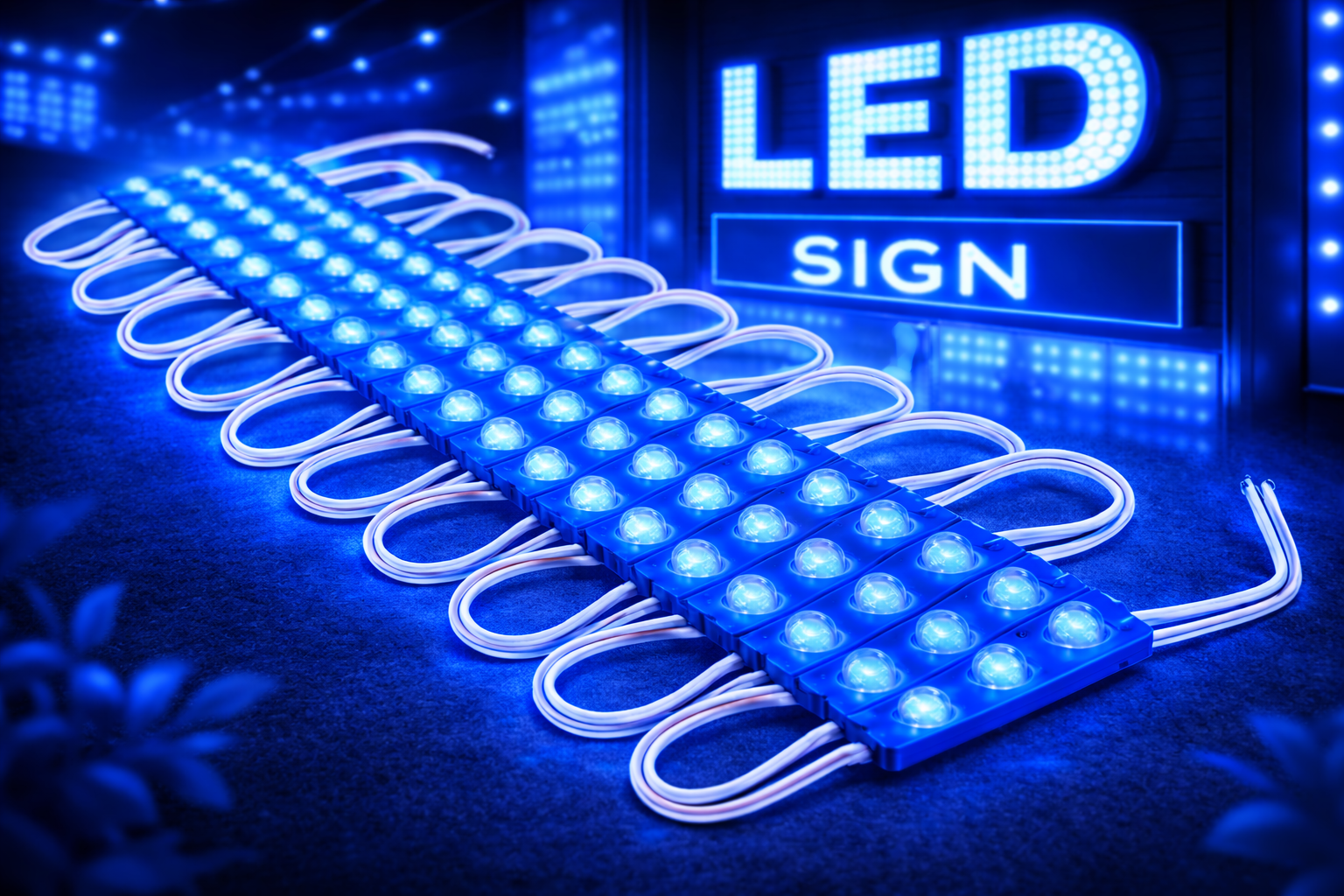 Módulo de LED de alta eficiência com lente integrada, ideal para iluminação de letras caixa, fachadas, painéis luminosos e comunicação visual. Proporciona iluminação uniforme, com excelente dispersão de luz e baixo consumo de energia.