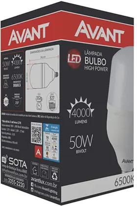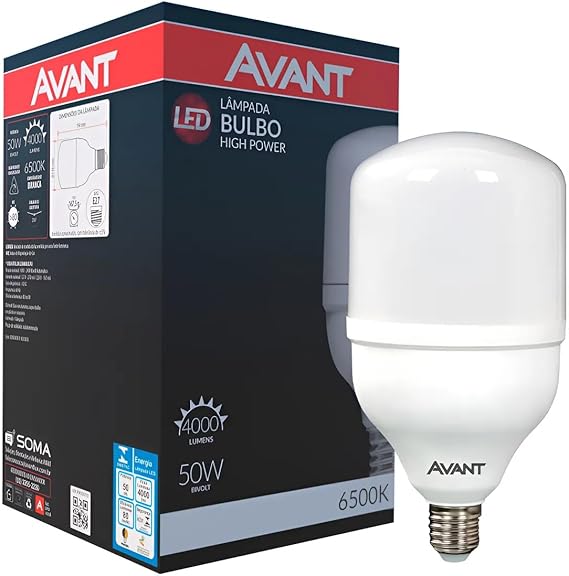 A Lâmpada LED Bulbo Avant 50W Branco Frio é indicada para ambientes que necessitam de iluminação intensa e eficiente. Com temperatura de cor 6500K, proporciona uma luz branca clara e forte, ideal para locais que exigem alta visibilidade, como galpões, oficinas, áreas comerciais, garagens e depósitos.